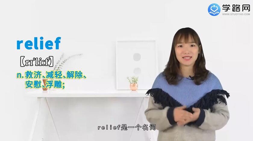 例如在下面这两个句子里,International organizations intensified their activities,to locate victims and assist with relief efforts.各国际组织加强了他们的活动以寻找受害者并协助救援工作。A self-help program which can give lasting relief from the fever.一个可以永久解除发热折磨的自助疗方。在这两个句子中,relief都指的是救济、解除,relief还有一个短语,disaster relief,指的是赈灾、灾难援助,To avoid delays,she wanted the disaster relief to be kept free of disrelated matters.为避免延误,她希望无关紧要的事不被掺杂进灾害救济中。relief这个单词你学会了吗?