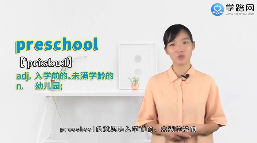 我们再来看下这个单词的意思,它由两部分组成,pre前缀,表示在…前面,school是词根,翻译成学校、上学的意思,联系起来在上学之前,可以延伸为它的本意,入学前的、未满学龄的,preschool在这个句子中,Looking after so many preshool children is a very tired thing,照顾这么多学龄前儿童是一件非常累人的事,preschool在这里就作形容词翻译成学龄前的,而学龄前儿童我们也可以直接用preshoolers来表示,preschool这个单词你学会了吗?